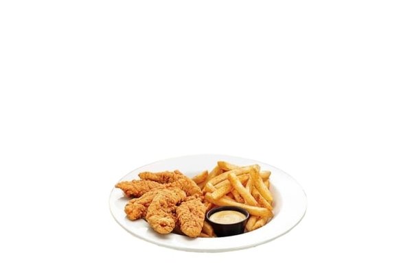 5 pieces, fries, garlic dip, coleslaw, ketchup, tomato, pickles and bread