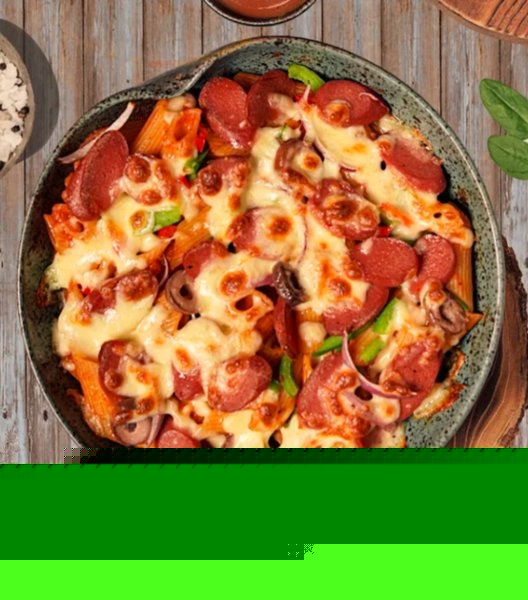 Pastrami, kiri cheese, mozzarella, colored pepper, olives
