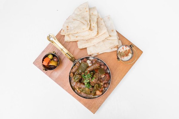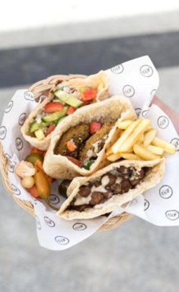 Minced beef, tomatoes, shredded greens, tehina sauce