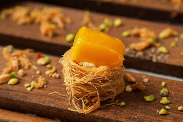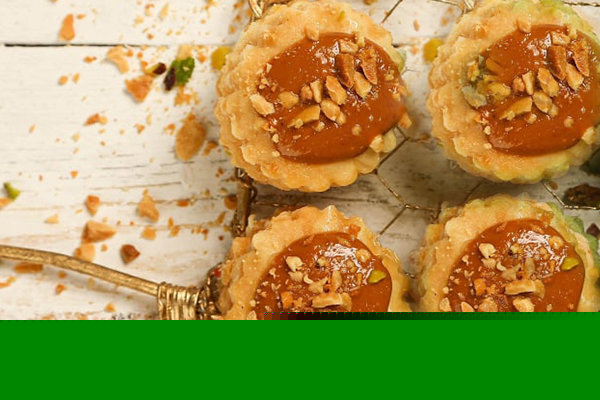 Buttery tart dough stuffed with caramel mousse and camel eye