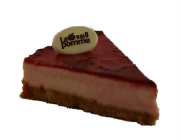 A layer of biscuit and cheese cream covered with a layer of red raspberry