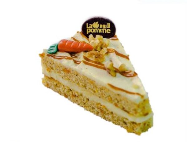 Carrot cake in cream cheese with cinnamon and caramel sauce