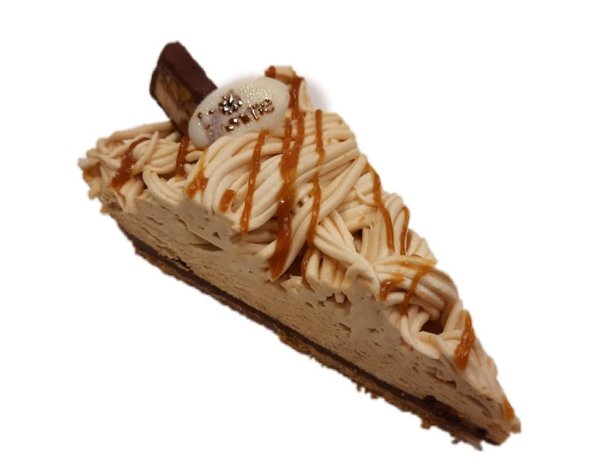 Tart stuffed with white and chocolate mousse, caramel, peanut butter and snickers