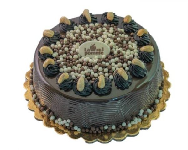 Chocolate fudge layers, galaxy chocolate cake stuffed with chocolate cream, nuts and topped with galaxy pieces