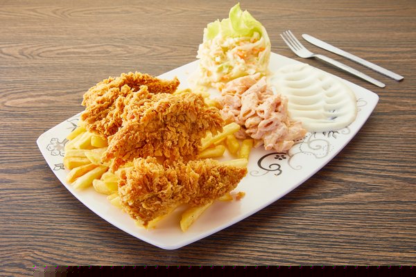 Served with rice, fries, pickles, garlic dip, spicy garlic dip and bread