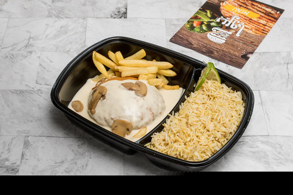2 chicken breasts, cheddar sauce, smoked turkey, onion rings, BBQ, mayonnaise & bread with sesame