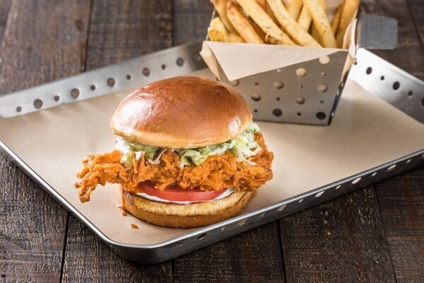 Crispy Chicken TacosTwo flour tortillas filled with crispy chicken breast, smoked beef bacon, tomatoes, cheese, lettuce, honey-chipotle drizzle served with homestyle fries |