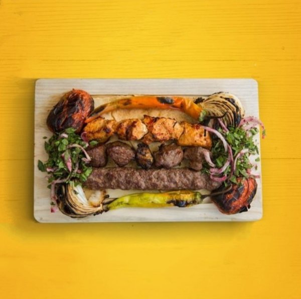All meals are served with rice or fries, grilled tomatoes, grilled onions, toasted bread