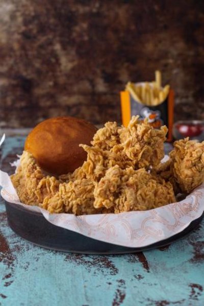 Jumbo Strips10 strips pieces, fries, bread, coleslaw, pepsi |