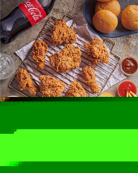 4 large chicken pieces, 4 small chicken pieces and 8 crispy strips pieces