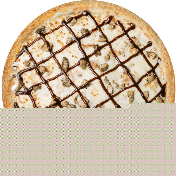 Grilled chicken breasts, mushroom, green pepper, onion, tomato sauce, ranch sauce, mozzarella