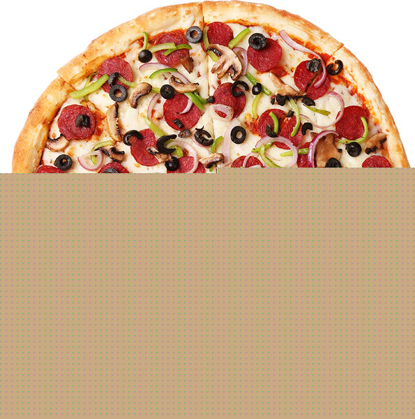Pepperoni, onion, green pepper, olives, mushroom, mozzarella cheese