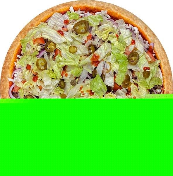 Tomato sauce, minced meat, tomato, onion, lettuce, hot jalapeno, mozzarella