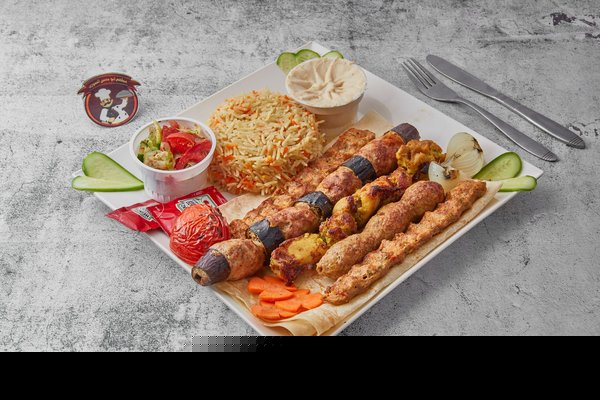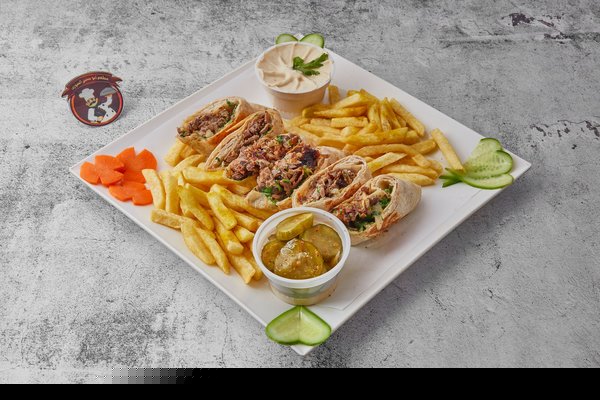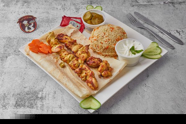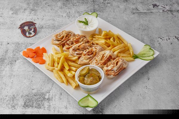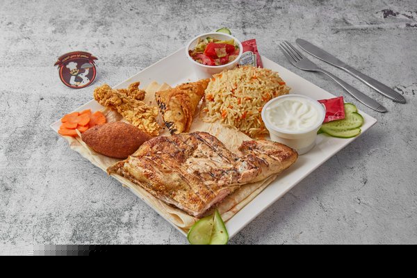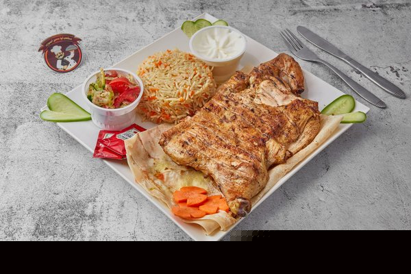 1/4 ChickenWith crispy, rice, fries, green salad, bread, garlic dip, ketchup, dates |