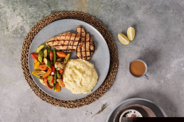 Served with penne pasta with sauce of your choice (red, white or pink) or 2 side dishes of (sauteed vegetables, grilled vegetables, rice, French fries, mashed potato, green mashed potato or potato wedges)