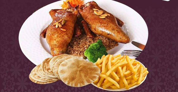 Served with basmati rice, garlic dip, fries and pickled cucumber