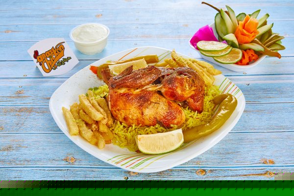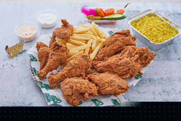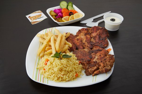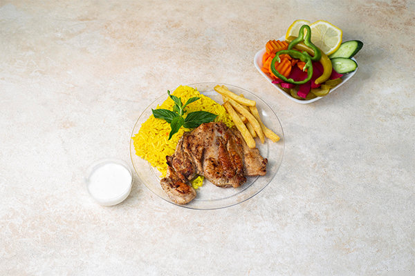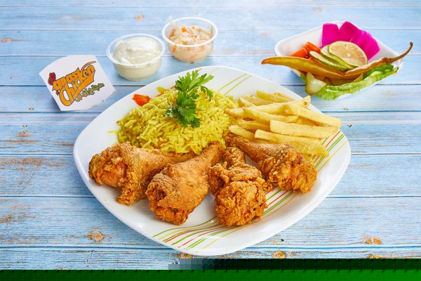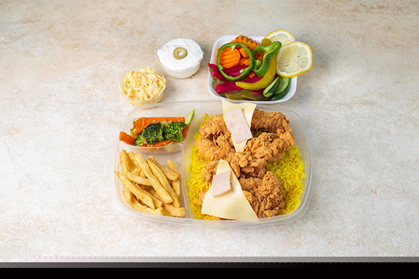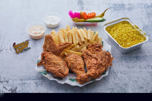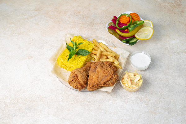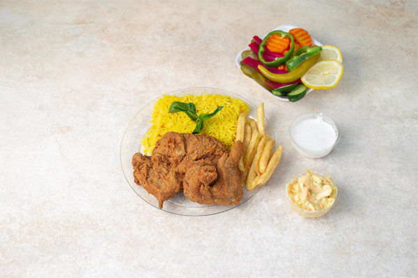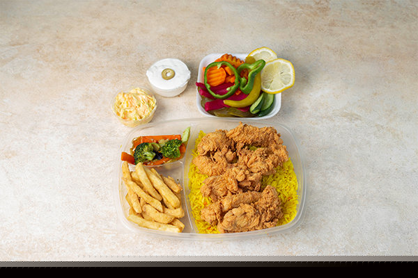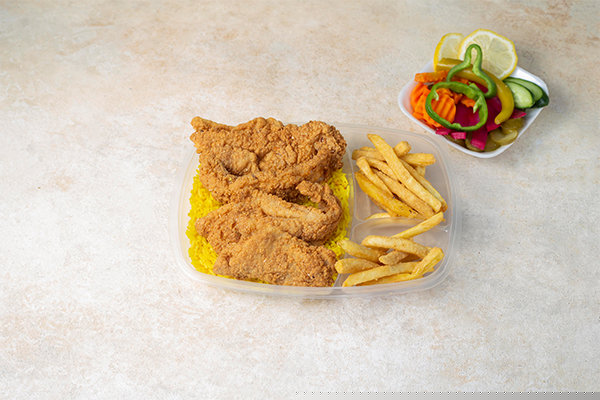 Fish FilletFish pieces, basmati rice, fries, sauce, pickles, bread |