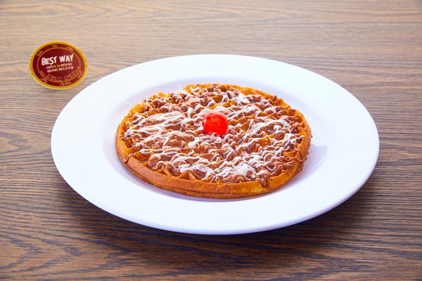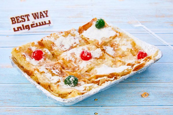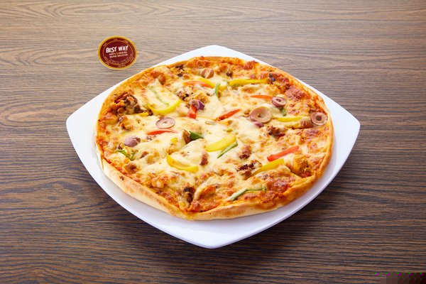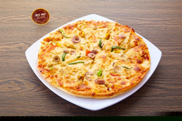 Chicken shawerma, mozzarella, chicken pieces, vegetables and strips