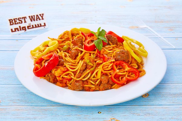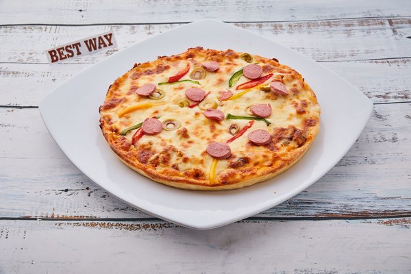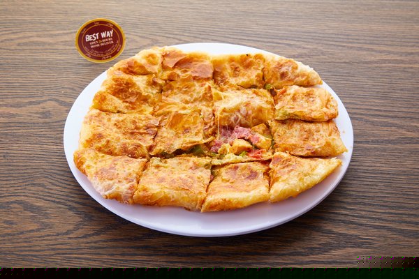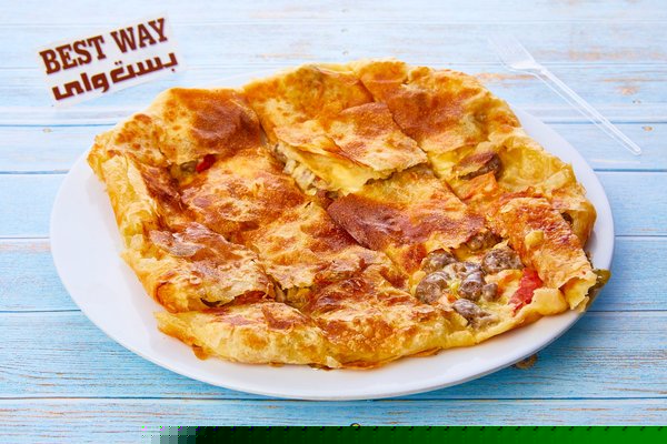 Minced meat, sojouk, pastrami, tomato, pepper, olives and mozzarella