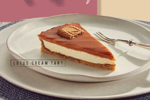 A light dessert made with a thin crust of Lotus biscuit, topped with buttery cream and covered with caramel to fulfill your sweet cravings