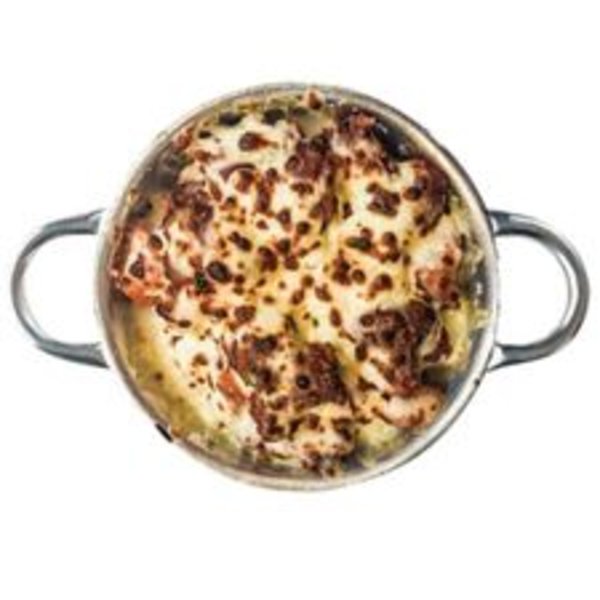 Turkish Moussaka with beefsteak slices & raisins in bechamel sauce