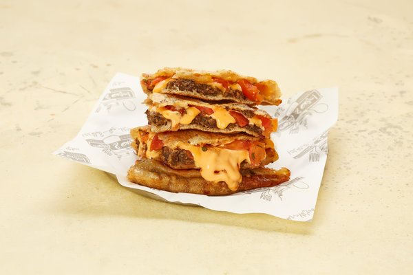 Fried roomi cheese, BBQ, onions, tomato, cheddar cheese