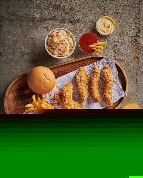 Crispy chicken breast strips with special spices, 3 pieces served with fries, 5 pieces & 5 pieces combo served with fries & coleslaw