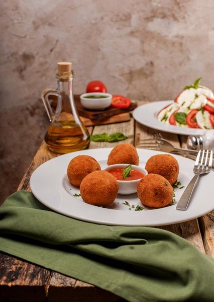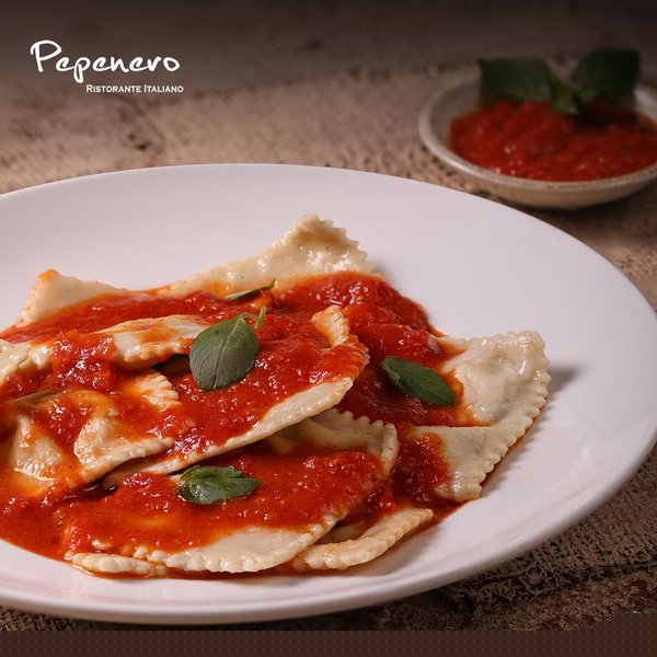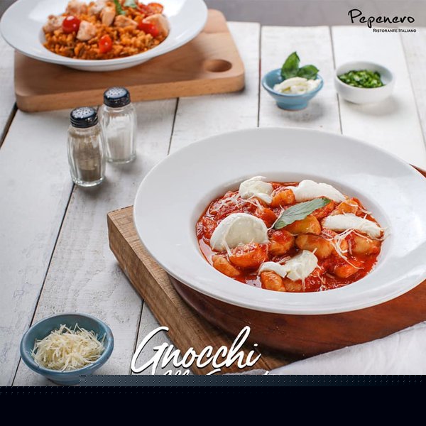 Homemade gnocchi with tomato sauce, mozzarella and parmesan cheese