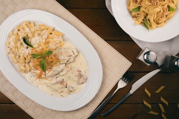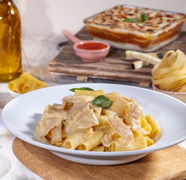 Homemade cannelloni with ricotta, spinach, white sauce and parmesan cheese