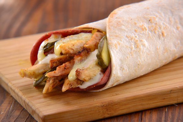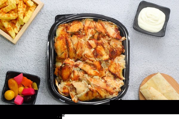 Spicy Chicken StripsChicken strips pieces, iceberg lettuce, pickled cucumber, mayonnaise, garlic dip, fries |