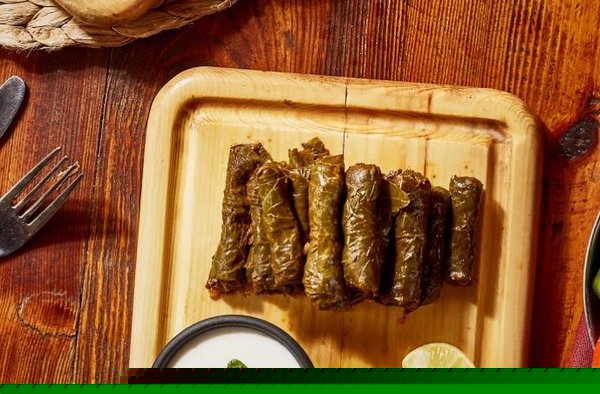 Stuffed with Egyptian khalta from rice, greens, olive oil, veal mouza meat