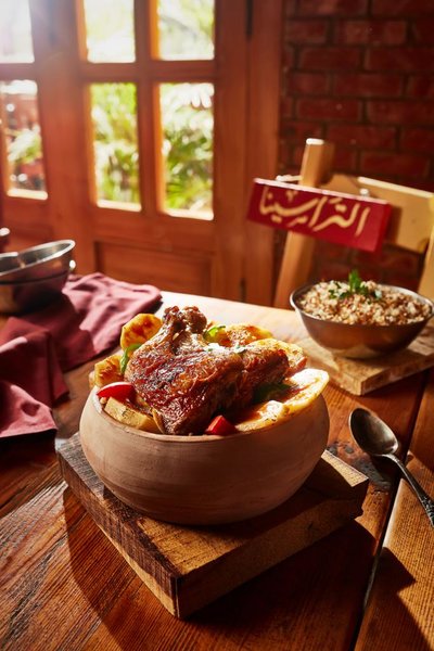 Egyptian rice cooked with butter, milk, qeshta, special spices, veal meat pieces
