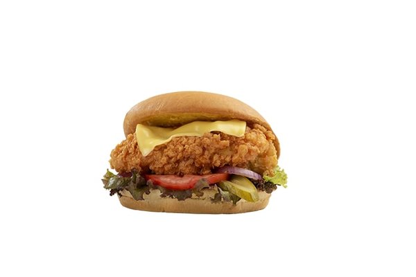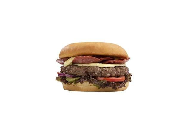 Spicy chili burger with jalapeno, red pepper, tomato, lettuce