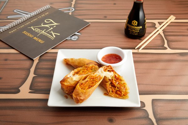 Smoked salmon, shrimp tempura, wrapped with cheese, sesame, teriyaki sauce