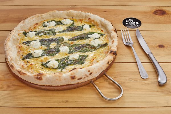 Napolitan style thin crust pizza made with San Marzano tomato sauce