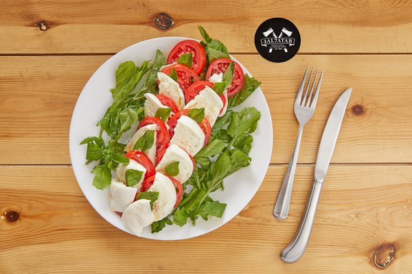 100gm of sliced artisanal buffalo mozzarella, tomatoes and basil dressed with pesto dressing