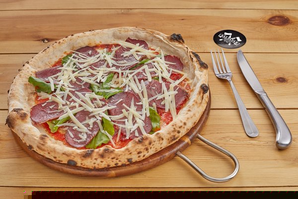 Tomato sauce, buffalo mozzarella, German salami, arugula, bersaola, pecorino & Romano cheese