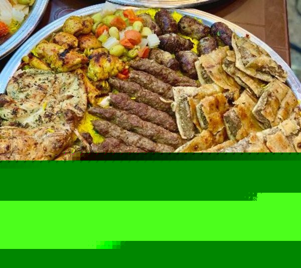For 6 persons, 1/2 kilo lamb kebab, 1/2 kilo lamb chops, 1/2 kilo lamb tarb, kilo lamb kofta, kilo lamb sojouk, 3 baladi hawawshi, basmati rice, 6 tahina, 6 pickles, baladi bread