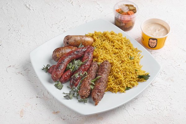 Chicken, 1/2 kofta, 1/2 sojouk, 1/2 tarb, 1/2 shish tawook and 2 baladi hawawshi