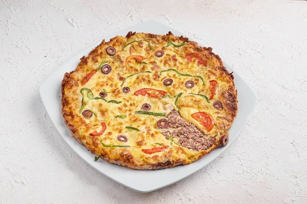Meat, olive, mushroom, mozzarella, pepper