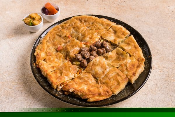 Baladi sojouk, pepper, tomato, olives, mozzarella, roomi cheese