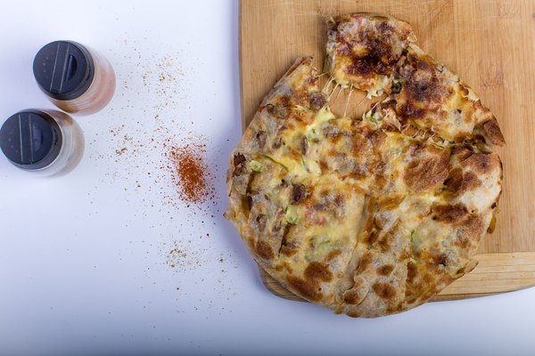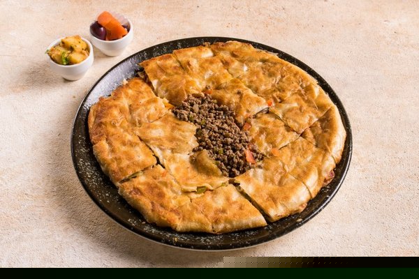 Minced meat, pepper, tomato, olives, mozzarella, roomi cheese