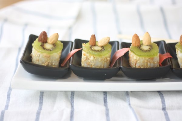 Salmon, shrimp, crab, avocado, cucumber, seaweed, wrapped in fried rice