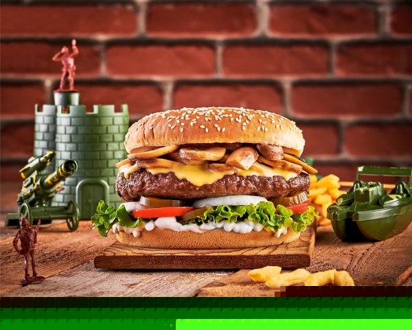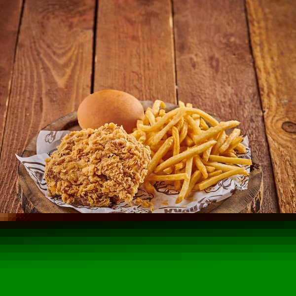 Kids MealBurger sandwich. 1 chicken piece, 2 chicken strips pieces or strips sandwich, fries, juice, toy |