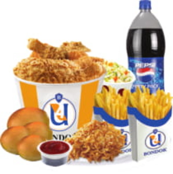 12 Tender Meal12 tender strips meal, fries, ketchup, coleslaw, 6 kaiser and Pepsi liter |