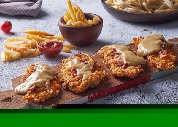 Served with BBQ sauce and garlic dip, choose 2 sides from sauteed vegetables, rice, fries, corn, potato puree, white sauce pasta or red sauce pasta