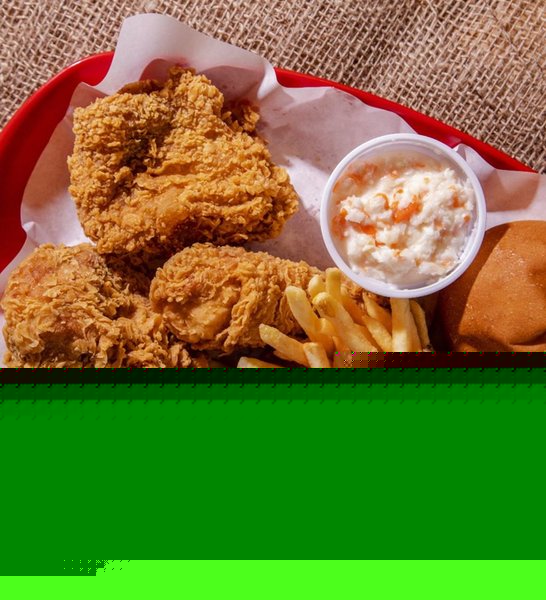 2 chicken pieces, 2 crispy chicken strips pieces, fries, coleslaw, rice and drink