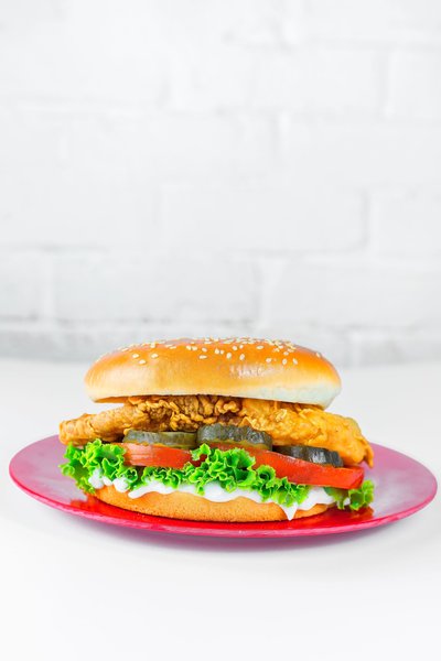 Crispy chicken, lettuce, tomatoes, pickled cucumber and mayonnaise