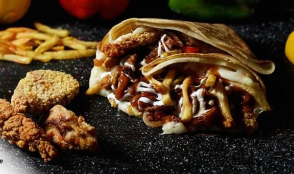 Chicken shawerma, beef shawerma, hot dog, crispy, fries and mozzarella