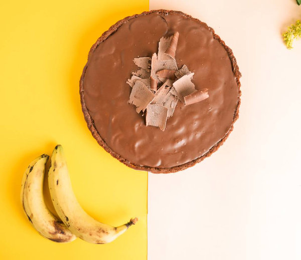 BanoffeeChocolate crust filled with Delight's specialty cream pastry and nutella, banana splits, topped with nutella spread |